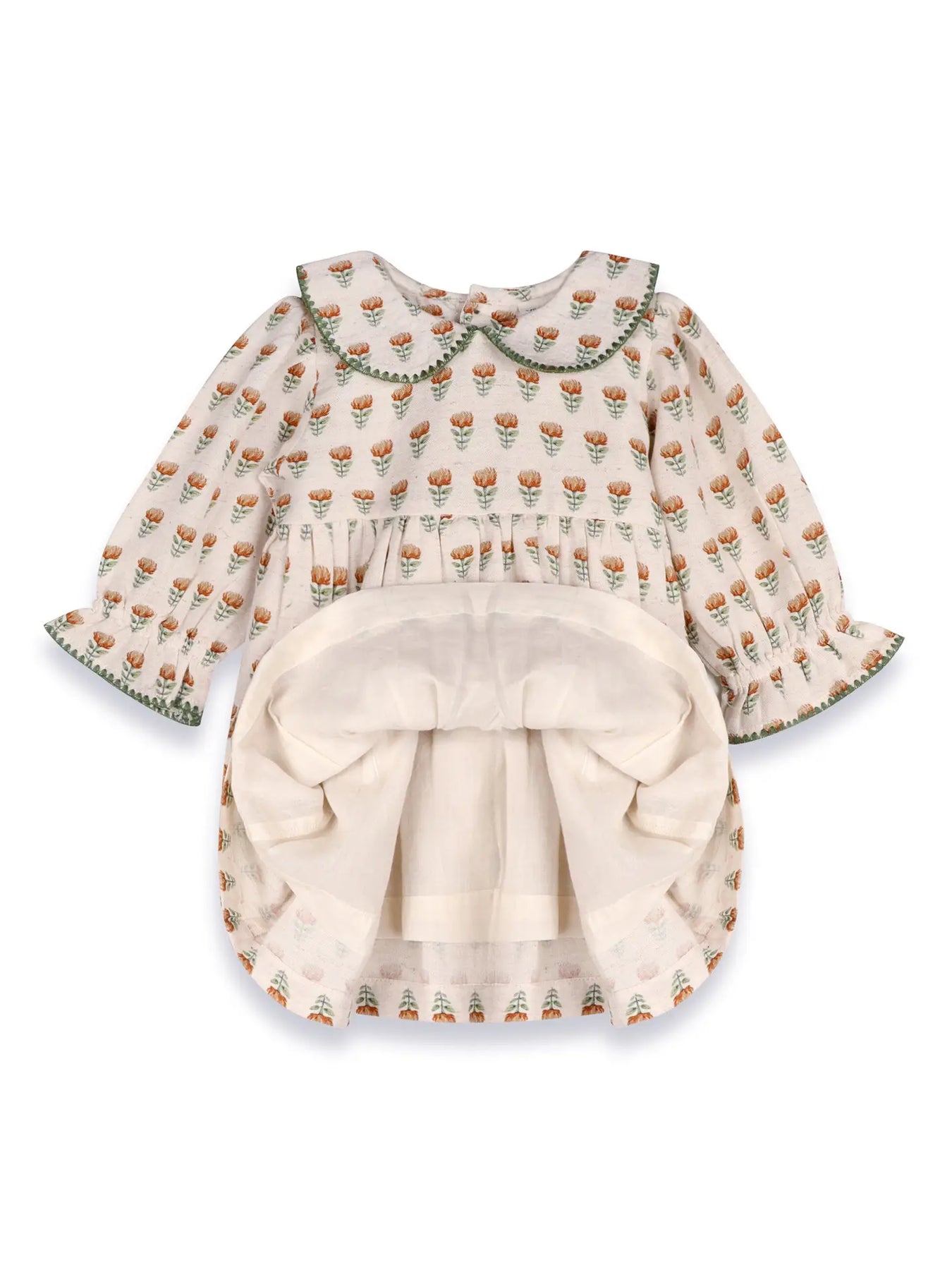 Gentle on baby’s skin, gentle on the planet. - All-season, super soft and linen-blend baby dress and matching bloomer set, comfy and cozy. - Traditional Indian block print by hand. - Machine washable, durable and long lasting. - Eco-friendly, chemical-free, non-toxic, pure, natural & organic baby clothes. - Ethically produced in India, supporting better livelihoods for small grower farmers.