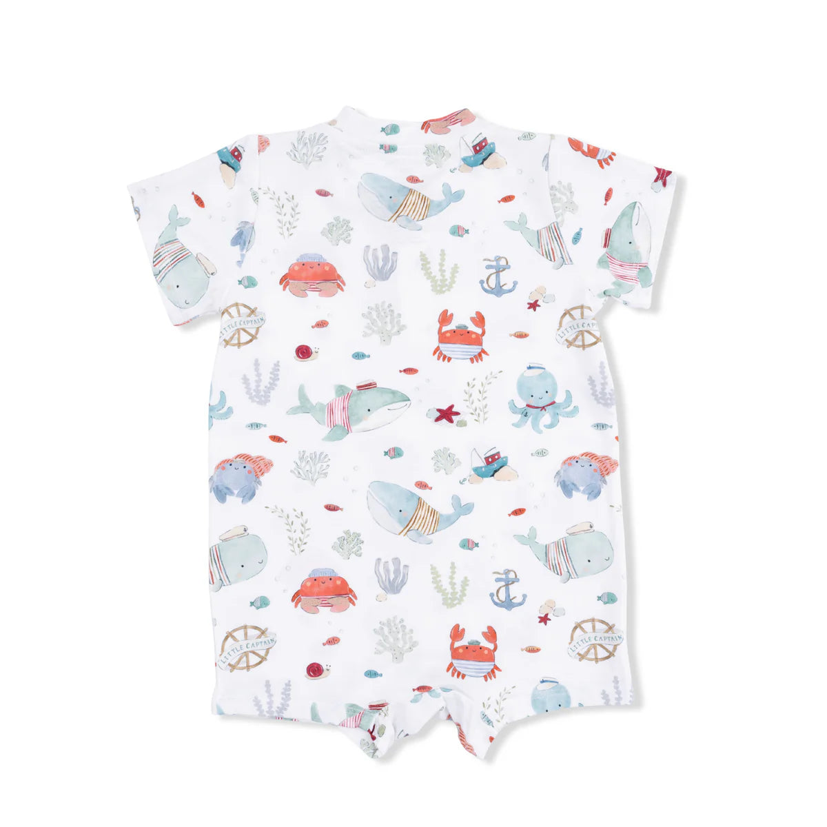 Bamboo material v-neck bubble with crochet trim, off white color with purple shannon floral print.