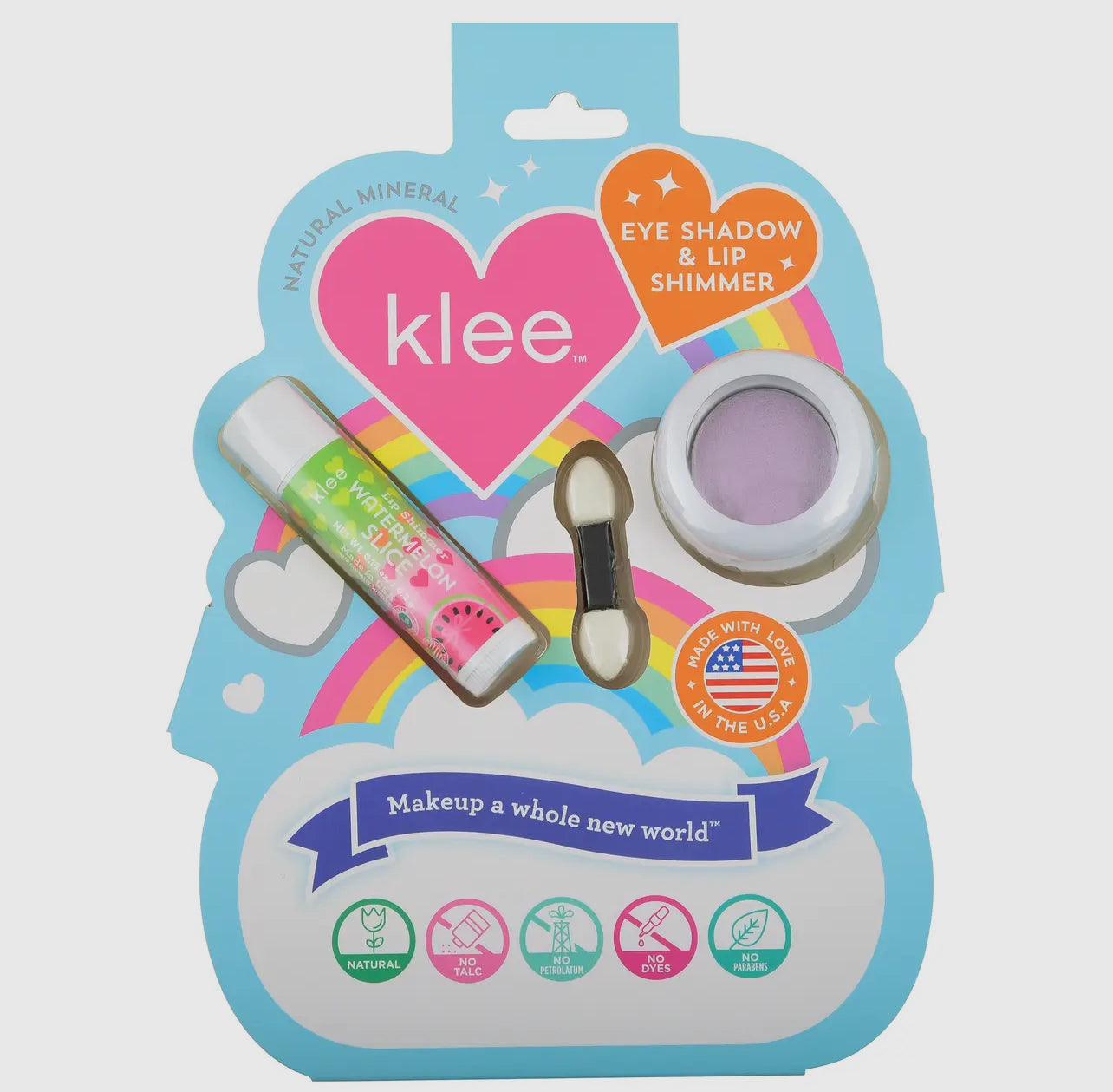 Rainbows create dreams and dreams create rainbows. Chase away nasty chemicals such as artificial dyes, fragrances and heavy mineral oils! The Primrose Shimmer set includes the light pink Sierra Amble eye shadow and Pink Lemonade lip shimmer. Klee Naturals makeup is formulated with NO talc, NO parabens, NO synthetic dyes and NO petrochemical binders. Gentle and non-toxic. No animal testing and gluten-free.