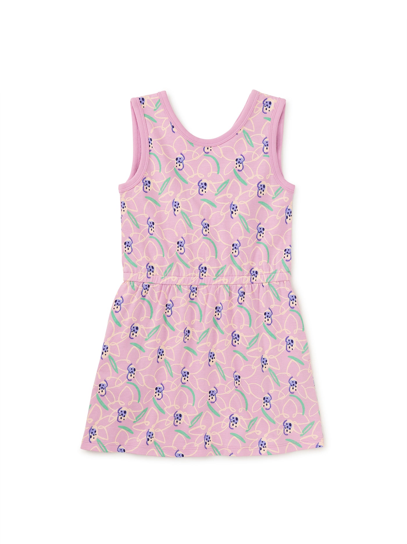 New style! Twice the fun, twice the style! This front-to-back reversible dress is made for springtime adventures. Featuring a charming, original floral print inspired by the beauty of the season, this sleeveless dress offers effortless versatility. Designed for all-day comfort with a soft 100% cotton jersey fabric and a gentle elastic waist for the perfect fit. Play, twirl, repeat! Mid-thigh length.